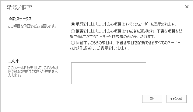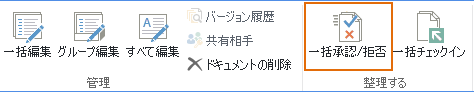 a. 公開済みのドキュメントまたはリスト項目を選択します。例えば、承認ステータスが承認待ちの時、ドキュメントタブで一括 承認/却下ボタンを押します。