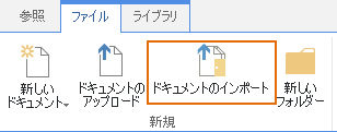 a. リボンの[ドキュメントのアップロード]メニューから[ドキュメントのインポート]をクリックします。