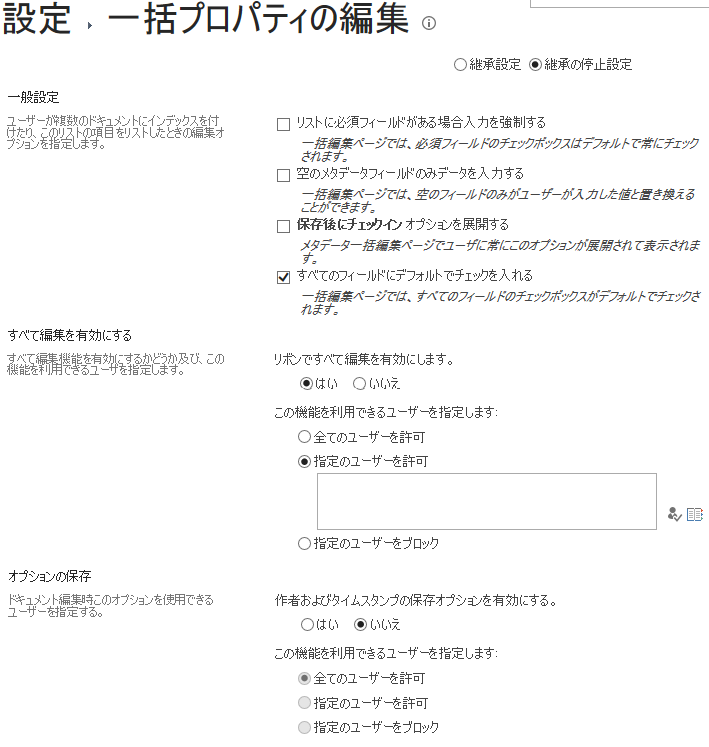 a. このページにアクセスするには、 ライブラリ設定 – Bulk Properties Editor設定に移動します。