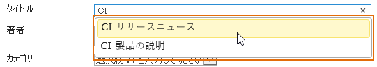 注: 現在オートコンプリート機能でサポートされているのは、 テキスト1行で構成される列タイプのみです。