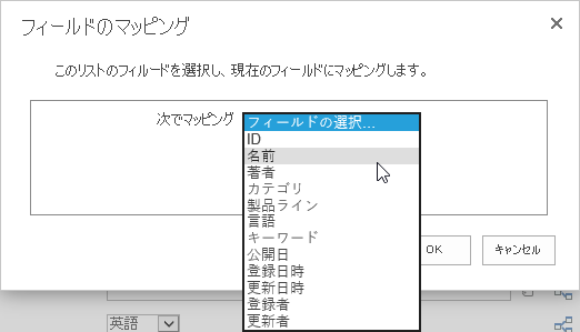 アイコンをクリックすると、フィールドマッピングウィンドウが表示されます。