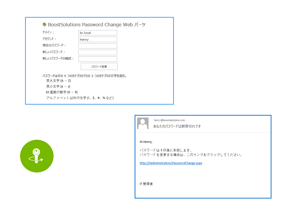 SharePointオンプレミスでエンドユーザーが管理者の介入なしに自身のパスワードを変更できるようにし、パスワードの有効期限が近づいた際にタイムリーなメール通知を受け取れるようにします。