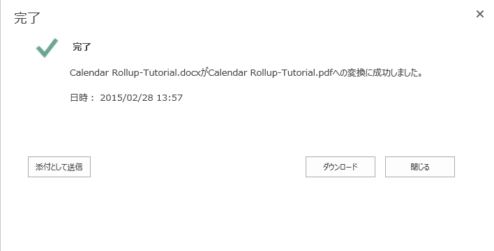 注:サポートされているファイルのみPDFファイルとしてダウンロードできます。サポートされていないファイルの場合、次のようなメッセージが表示されます。