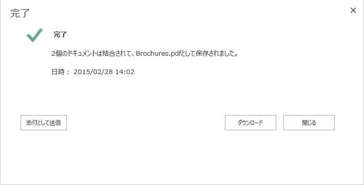 e. ドキュメントが正常に結合された旨のメッセージが表示されます。